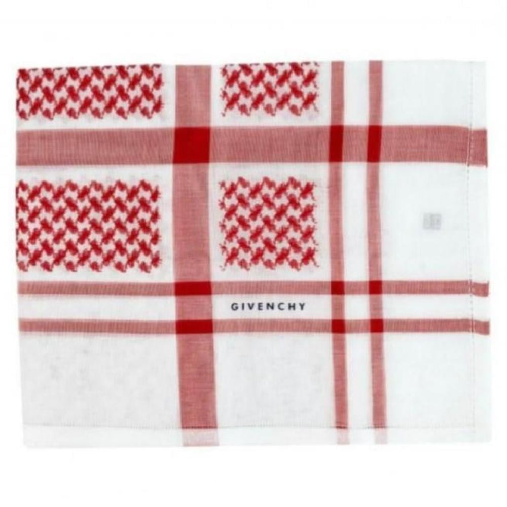 بكج 3 أشمغة جيفنشي باللون الأحمر من آخر الأصدارات عادةً ما يتضمن ثلاث شماغات مصممة بأناقة وفخامة تعكس توقيع العلامة التجارية.